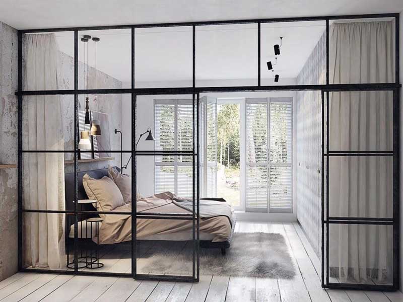 - Стеклянные перегородки и двери. Используйте стеклянные перегородки или двери для разделения пространства, сохраняя чувство пространства и светлости.