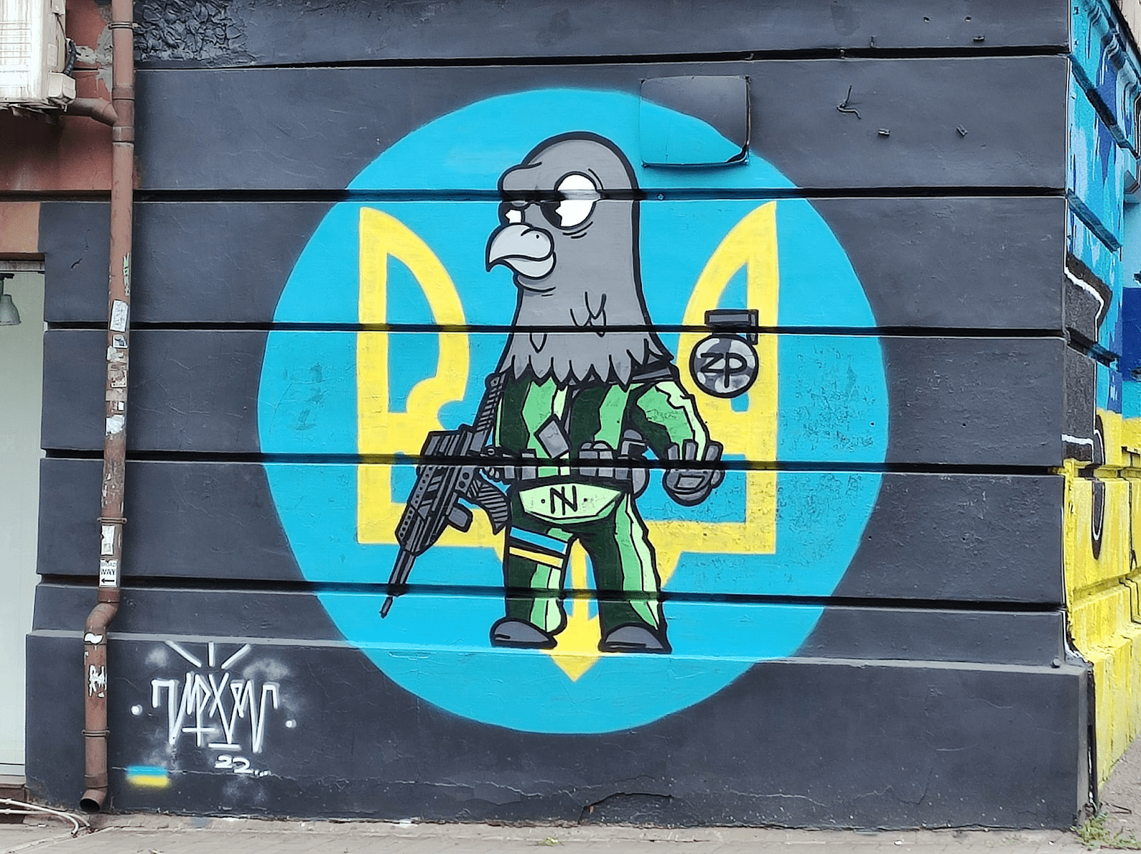 «Украина навсегда» поздоровается с вами на проспекте Соборном, шагая к площади Фестивальной. Воинствующий голубь, как шутливый символ биологического оружия каждого украинца, расположен дальше по проспекту на доме 172. Завершает серию Липтон, в Днепровском районе на кольце Каховской. По праву от него на заборе базируется красноречивый лозунг «Запорожье – это Украина». Такое напоминание крепости духа и несокрушимости, не только поддерживает, но и является одной из любимых инсталляций запорожцев.