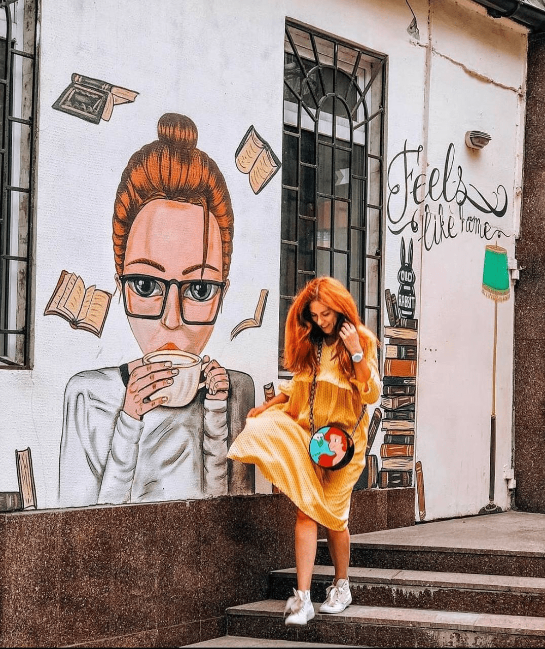 Фанатам кофе советуем пройтись вдоль тайм-кафе пиццерия «Old rabbir». Где можно выпить напиток в компании стенописи «Чувство дома». Такая фотография будет актуальна в любой сезон года.