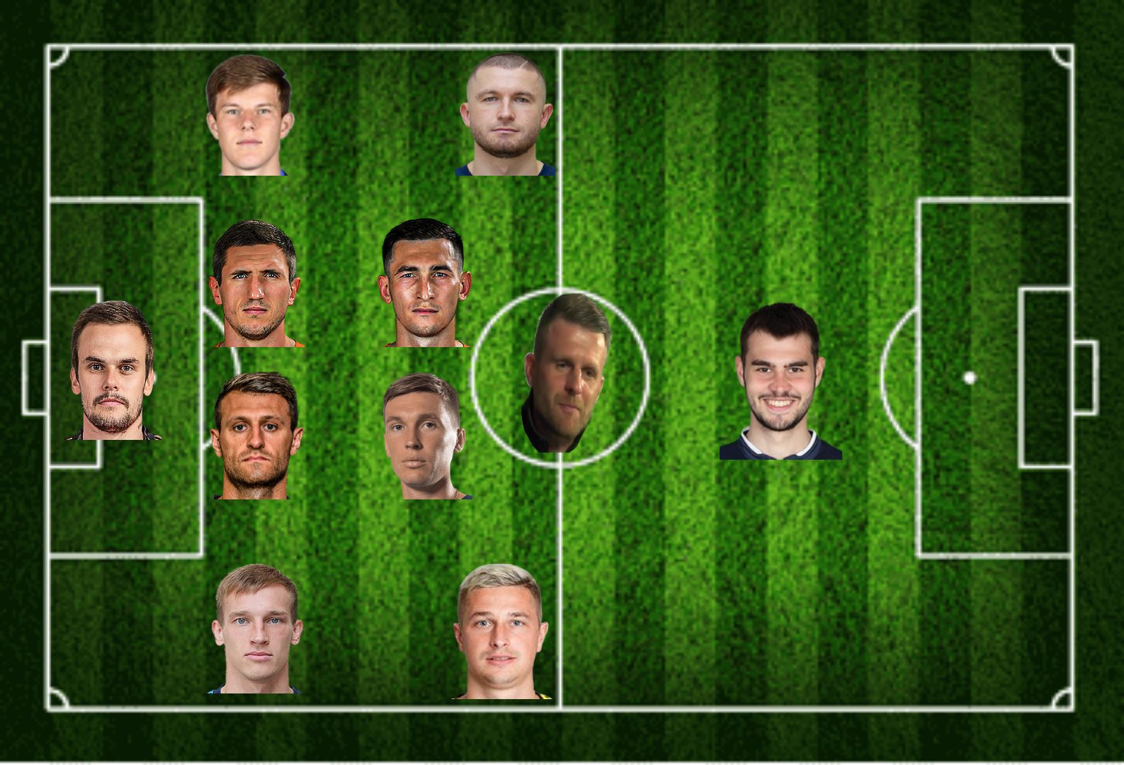 Одними из таких игроков, которых трудно назвать «молодыми и перспективными», можно выделить: Евгения Ткачука, центральный защитник («Металлист-1925»), Никиту Татаркова, левый полузащитник («Кривбасс»), Андрея Нестерова, центральный защитник («Полесье»), Евгения Опанасенко, центральный защитник («Кривбасс») и Олега Данченко, правый защитник («Заря»). Хотя текущий сезон в исполнении Олега Данченко подталкивает к дискуссии относительно позиции правого защитника этой символической сборной.