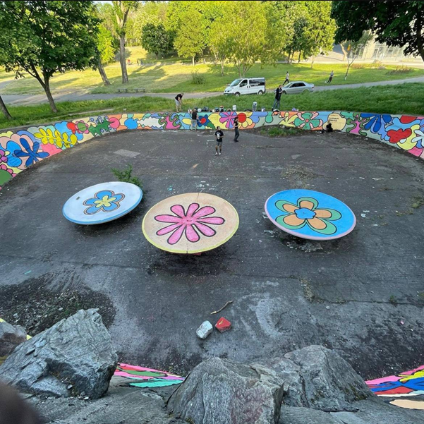 Змусить залишитись хоча б тому, що це гарно. Барвиста галявина оживає на очах між проспектом та вулицею Перемоги у парку Трудової слави. Колишній фонтан рейтери сестри Фельдман перетворили на живий сад. Велика територія дозволяє зробити серію знімків під різними кутами компанією друзів або ж провести дитяче паті на згадку.